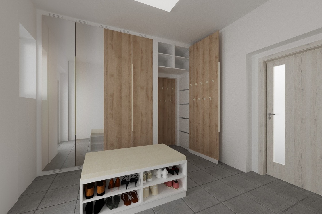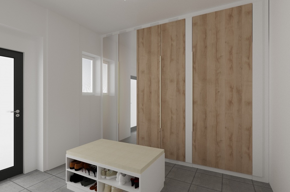 Součástí zakázky byla kompletní 2D a 3D vizualizace předsíně, výroba na míru, doprava a montáž přímo v rodinném domě. Prohlédněte si výsledek naší práce.